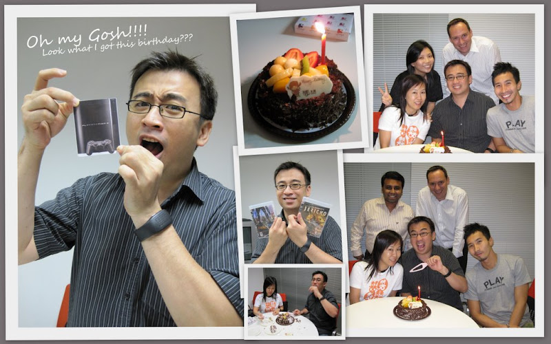 Today, my lovely team at OgilvyAction celebrated my birthday! And I was showered with so many huggies and kisses (haaa.. I forced upon them!) One of the biggest surprises was my birthday gift! The team passed me an envelop excitedly and kept prompting me to open the gift. Thinking it was a "massage voucher", I opened the envelop and found a cut-out Sony PS3 photo. "Yah right, funny…" that was what I said.